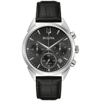 Bulova Chronograph Black Leather Watch 42MM, 96B371 (55% OFF)
