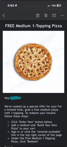 If you’re a Cottage Inn rewards member or have an account, keep an eye on your inbox. They sometimes send out random free pizza coupons. I just got one for a free medium one-topping pizza, no purchase required. Locations are in Michigan, Ohio and Indiana only.