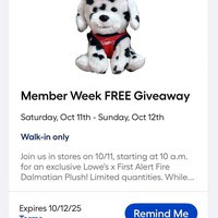 Lowe’s Rewards Members can get a FREE Lowe’s x First Alert Fire Dalmatian Plush in stores on October 11th or 12th, 2025. Stop by your local Lowe’s starting at 10 AM on either day to pick one up.