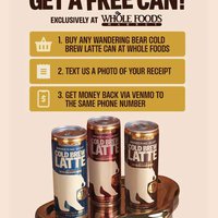 - Buy any Wandering Bear Cold Brew Latte Can at Whole Foods.