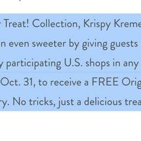 Krispy Kreme is offering free Original Glazed or Classic Ring Donuts on October 25 and 31 no purchase needed. Just visit a participating shop in-store wearing a Halloween costume to claim your treat, while supplies last.