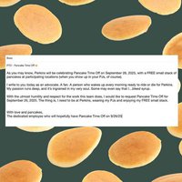 Get ready for National Pancake Day on Friday, September 26th! Visit any Perkins restaurant in your pajamas to receive a FREE small stack of buttermilk pancakes with any purchase. In-store only, while supplies last.