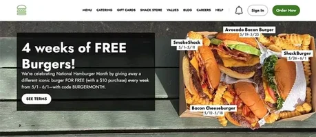 Shake Shack Burgers: 4 Weeks of FREE burguers (use code w/ $10+ purchase)